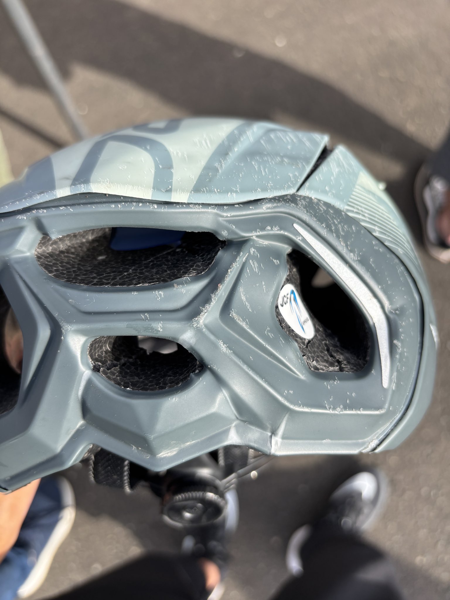 ヘルメットもこんなひどいことになっています・・・・40km/hくらいで転んだもんね・・・・