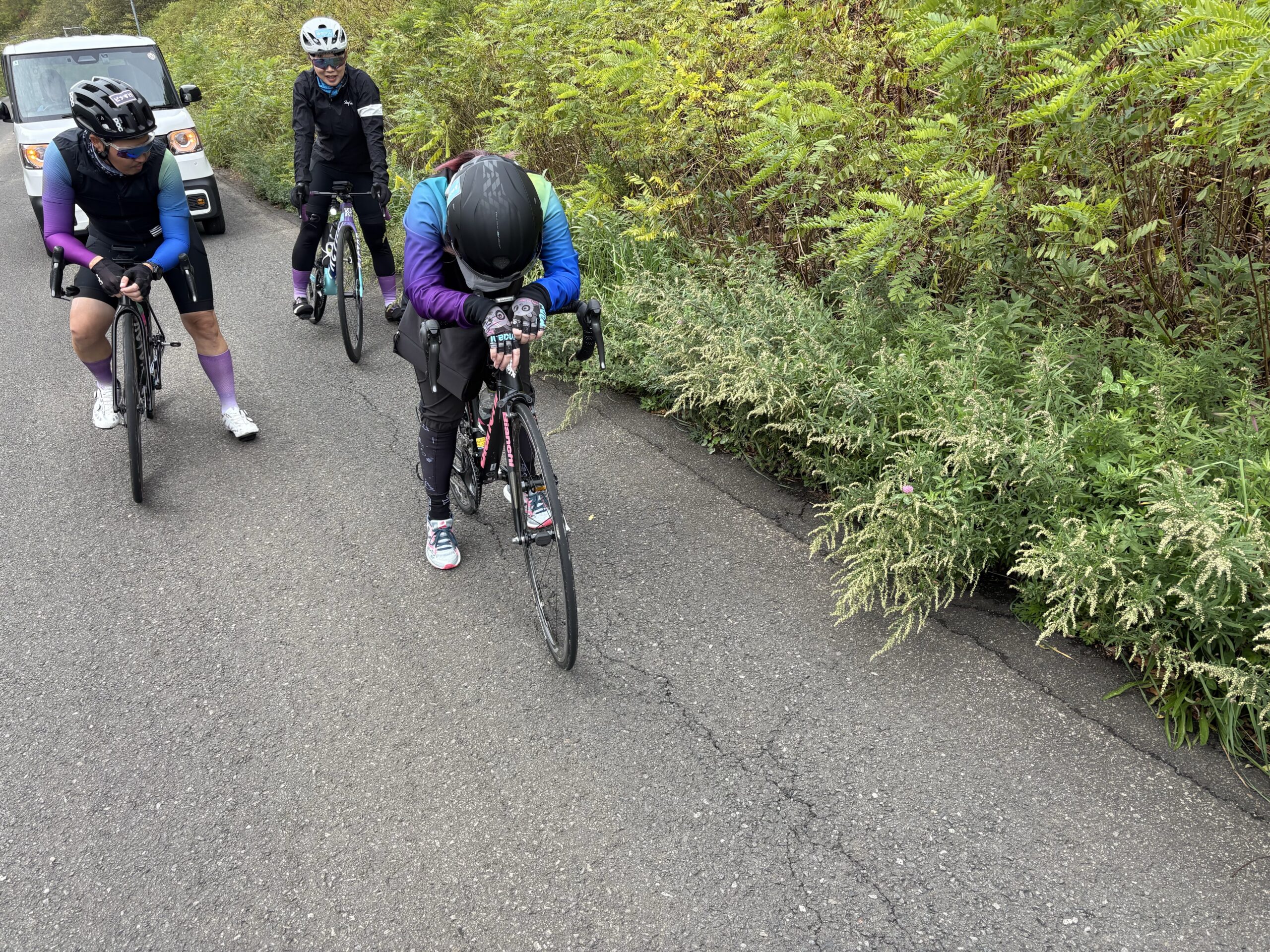 さてお妻よ・・・・ピナすけ夫婦とダイエットローディに見守られ、オデコワープなしで坂に挑むこととなった。