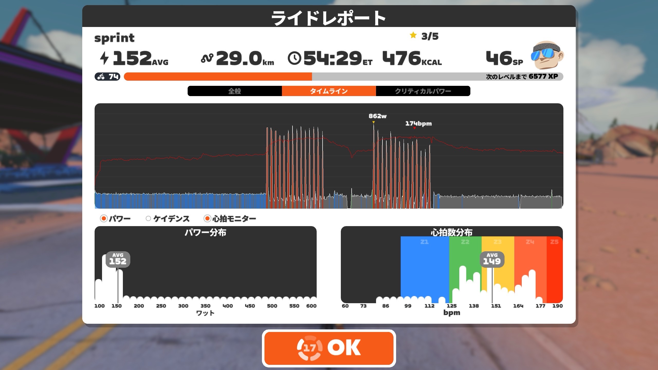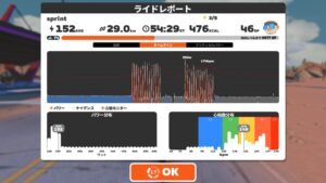 水曜 ベース(120w73分)→無酸素2×8×20秒@650w(レスト10秒)