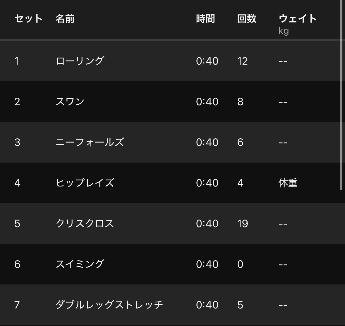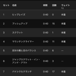 結構いいメニュー。そしてキツイ。これを40秒ずつ3セットである。