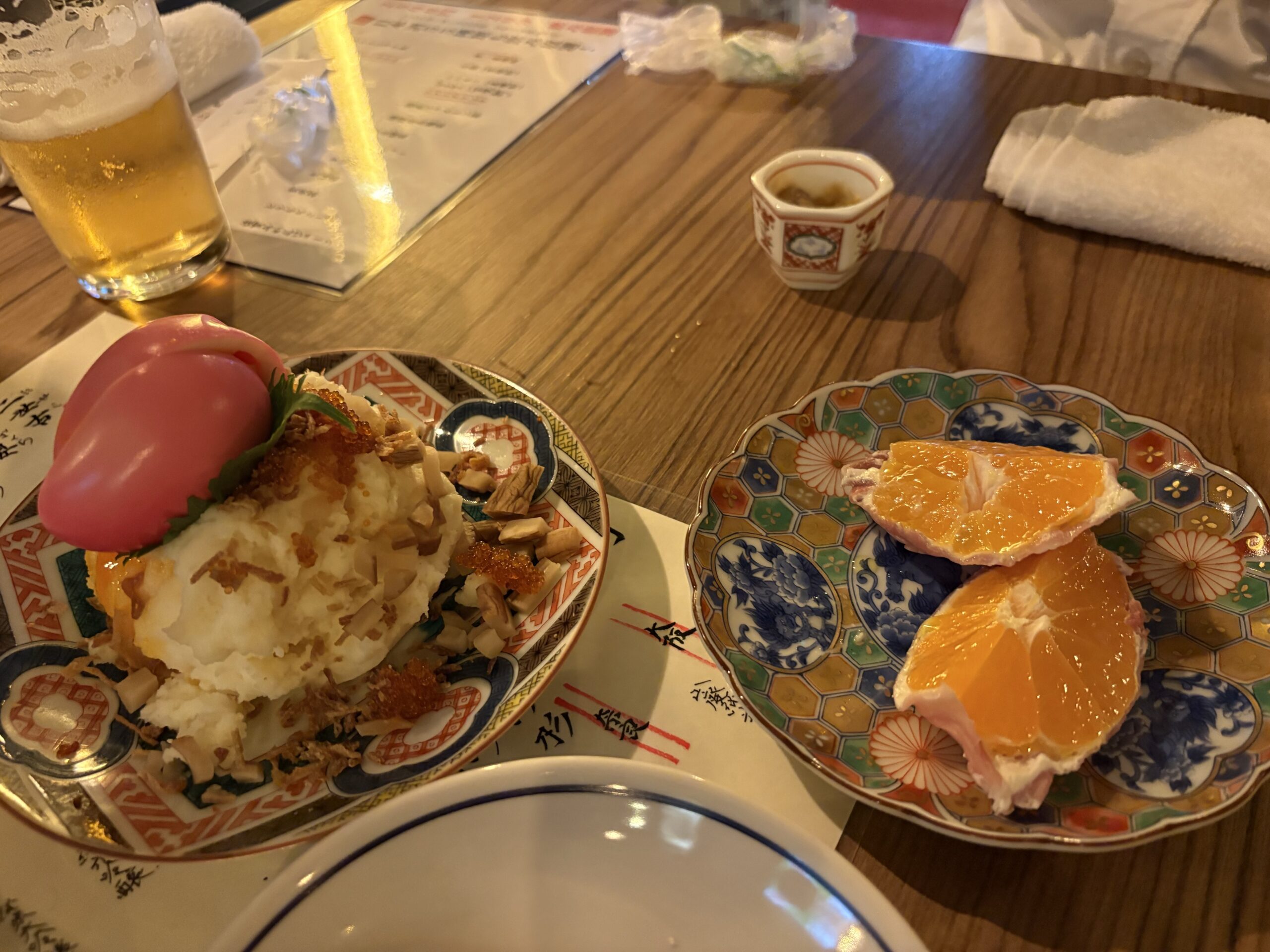 生ハムみかんは間にチーズが挟まってて不思議とおいしい。