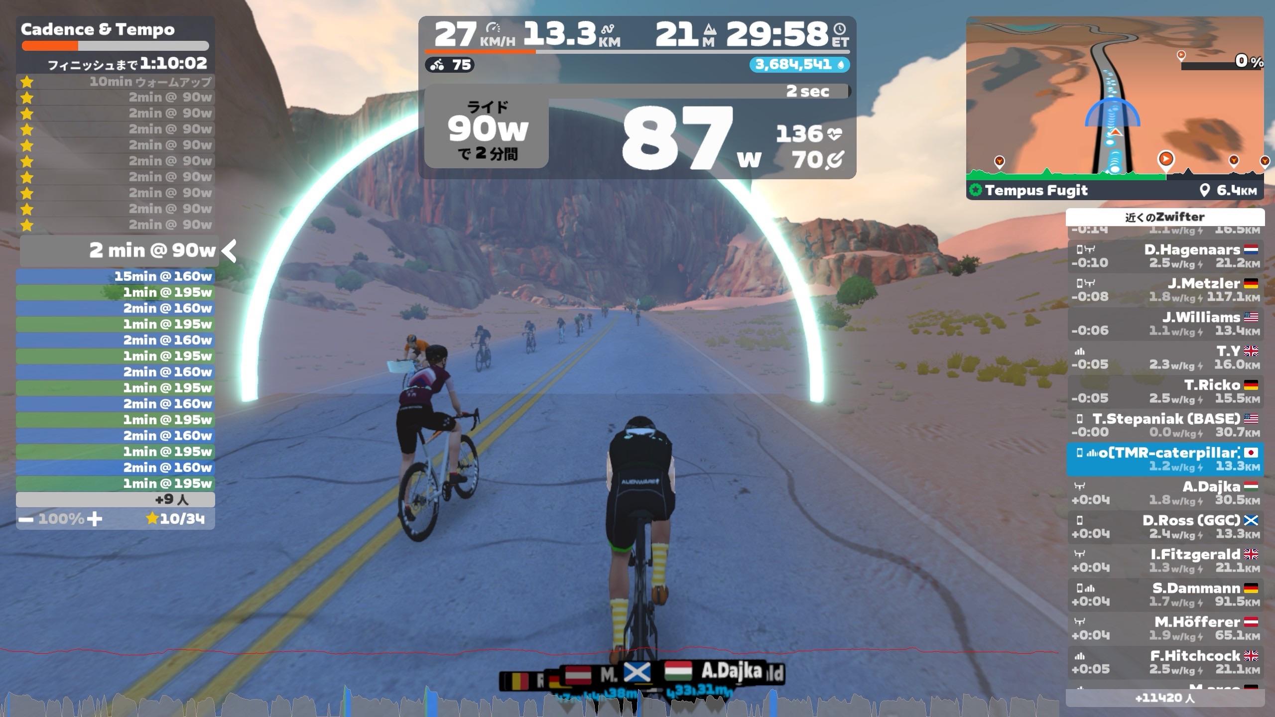 両足天国になってからはSSTが挟まってハイケイデンス練習。