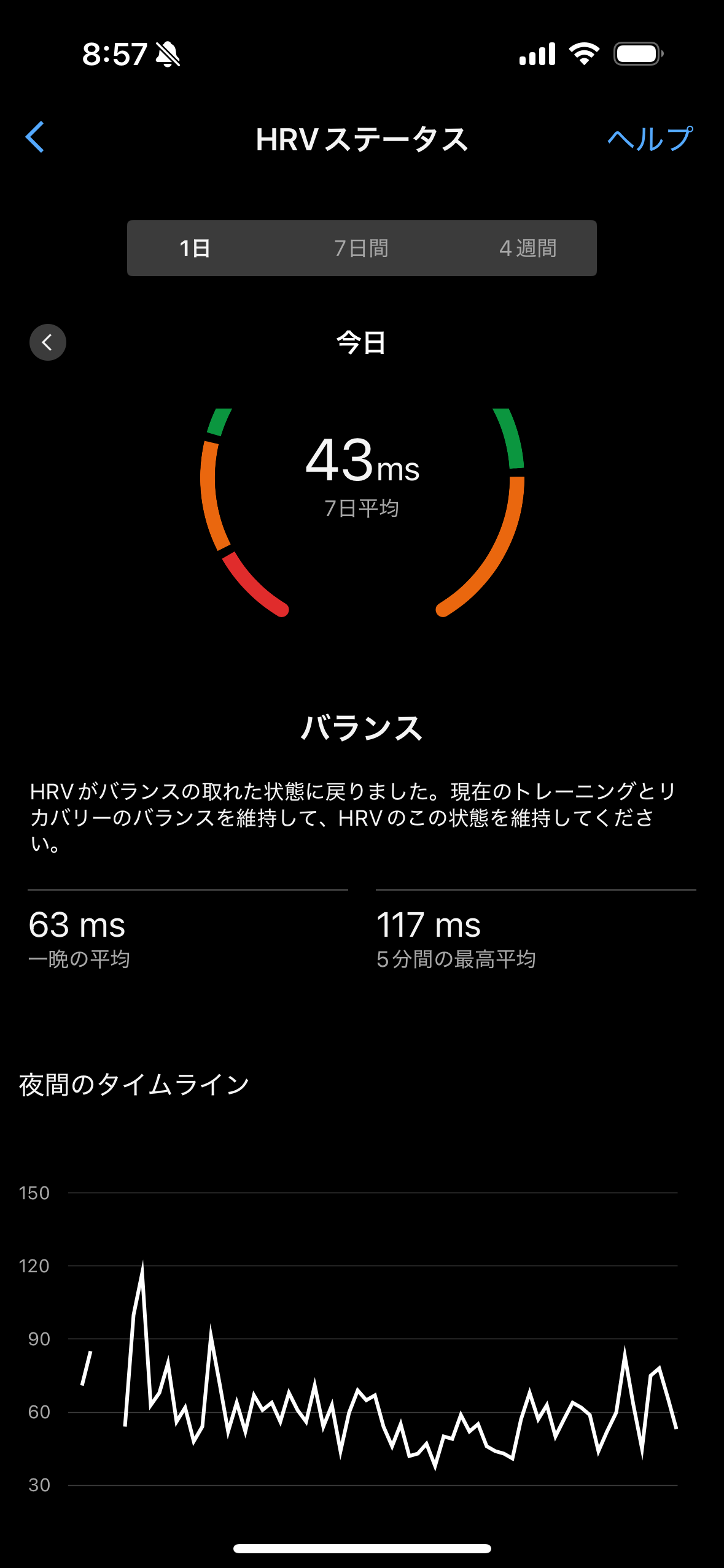 昨晩の平均63って。あたしのベースラインは41~51だぞ。