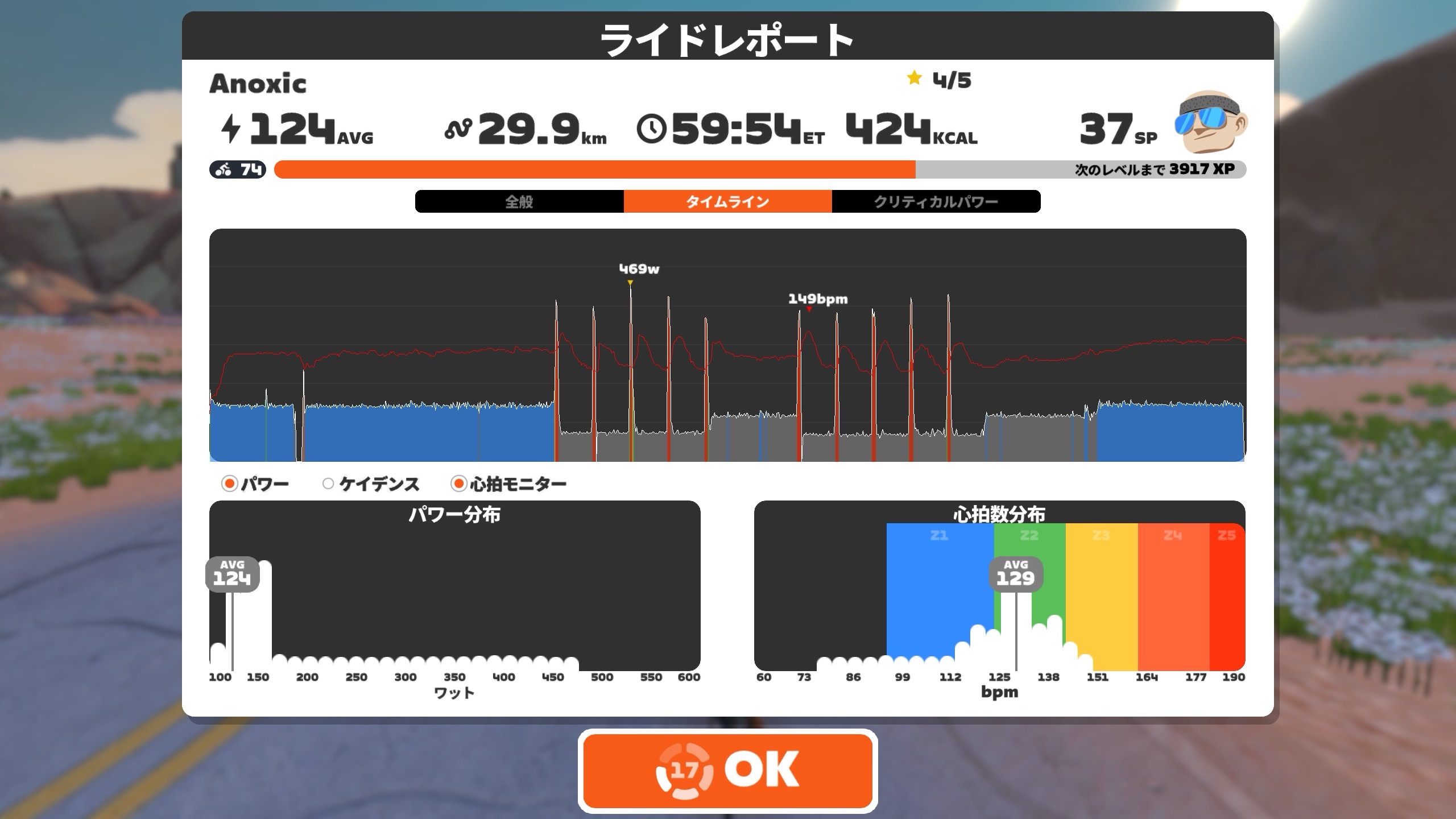 ただ、同じ強度で心拍下がってきたよね。効いてるかな。