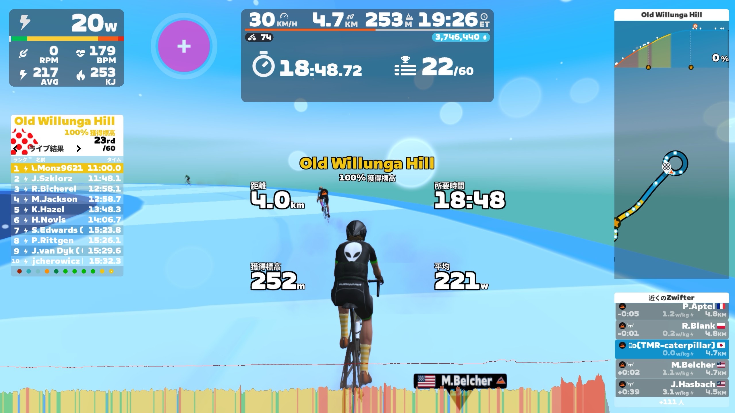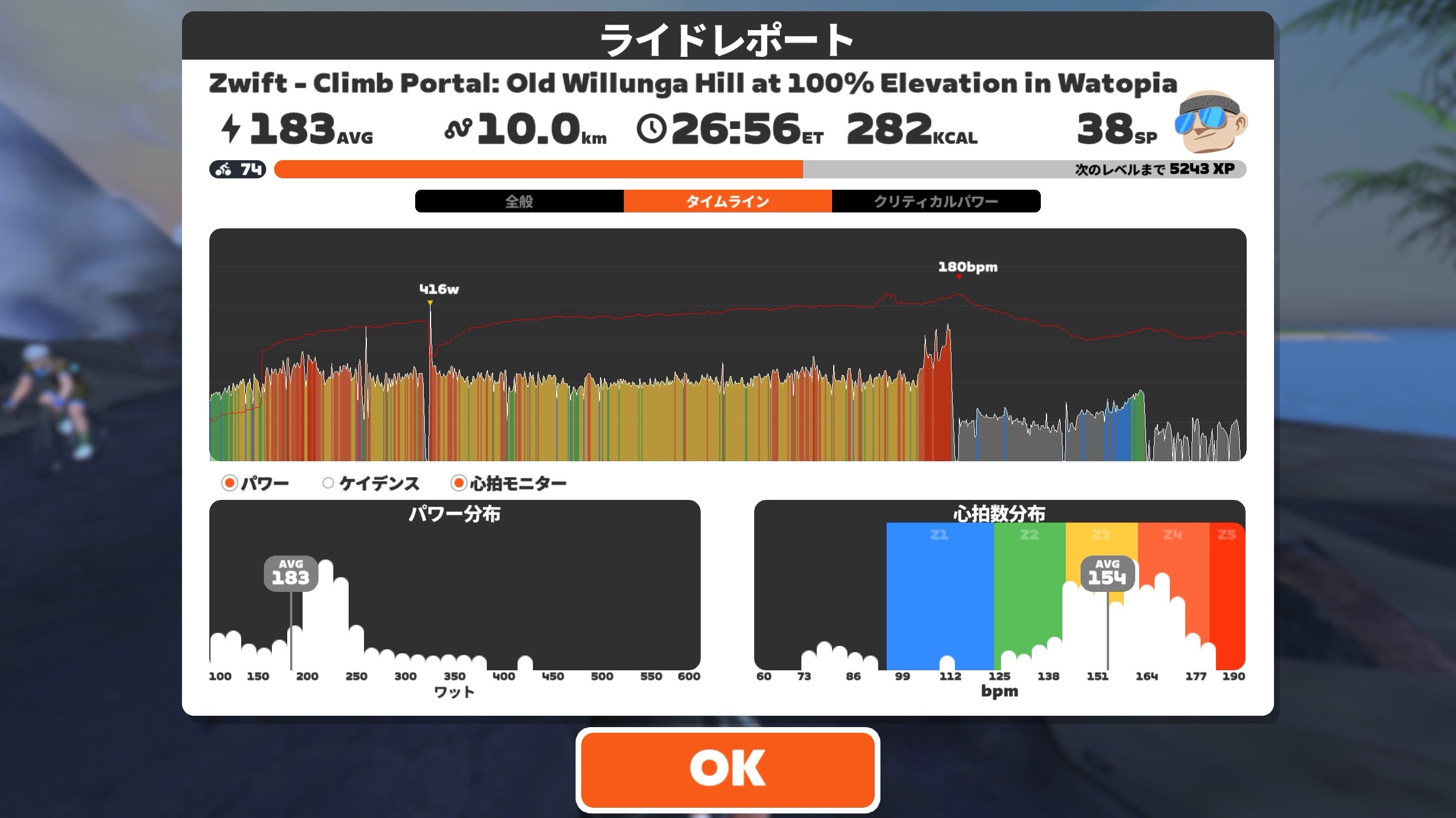 火曜 スプリント(2×5×10秒@805w)ZRL出走