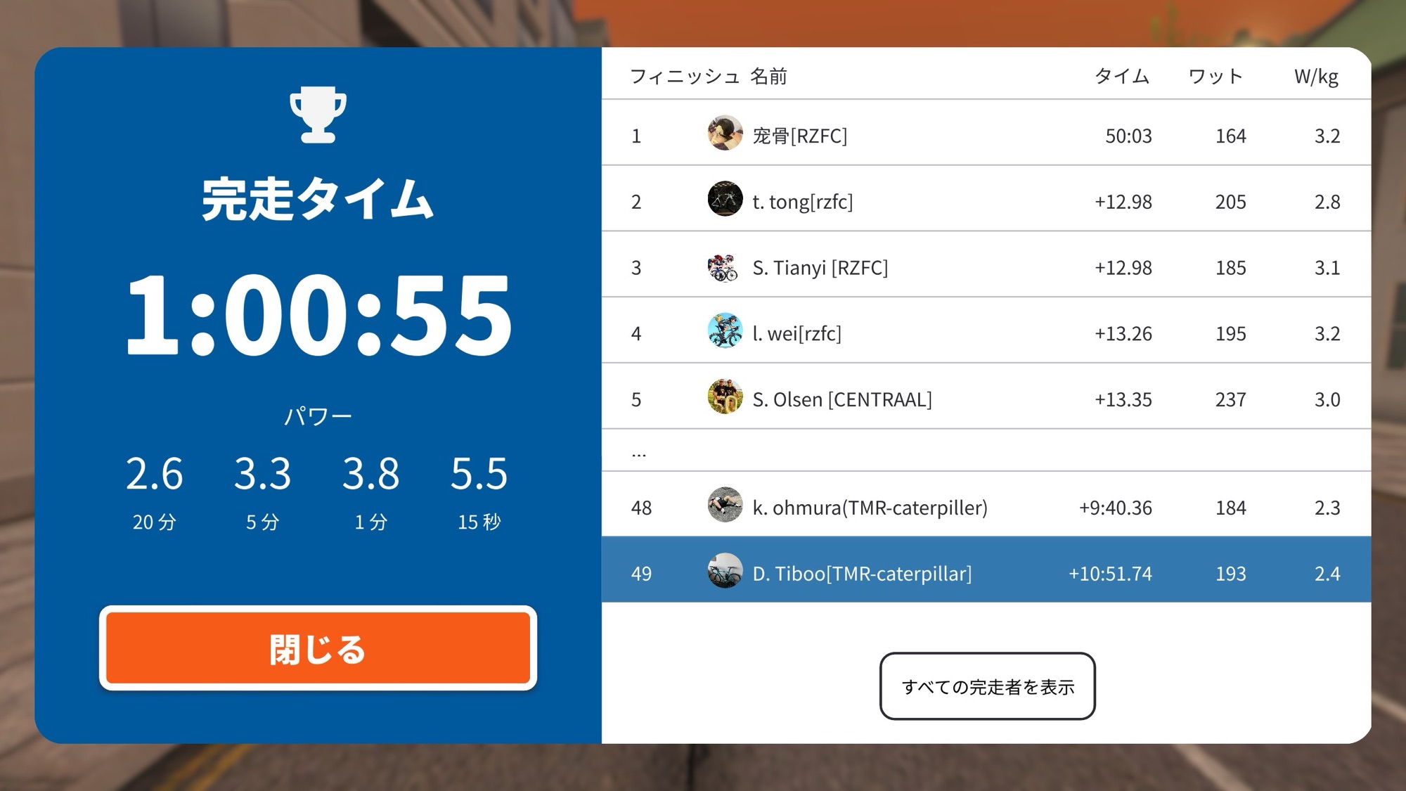 相手より少し高いパワーで走って!!