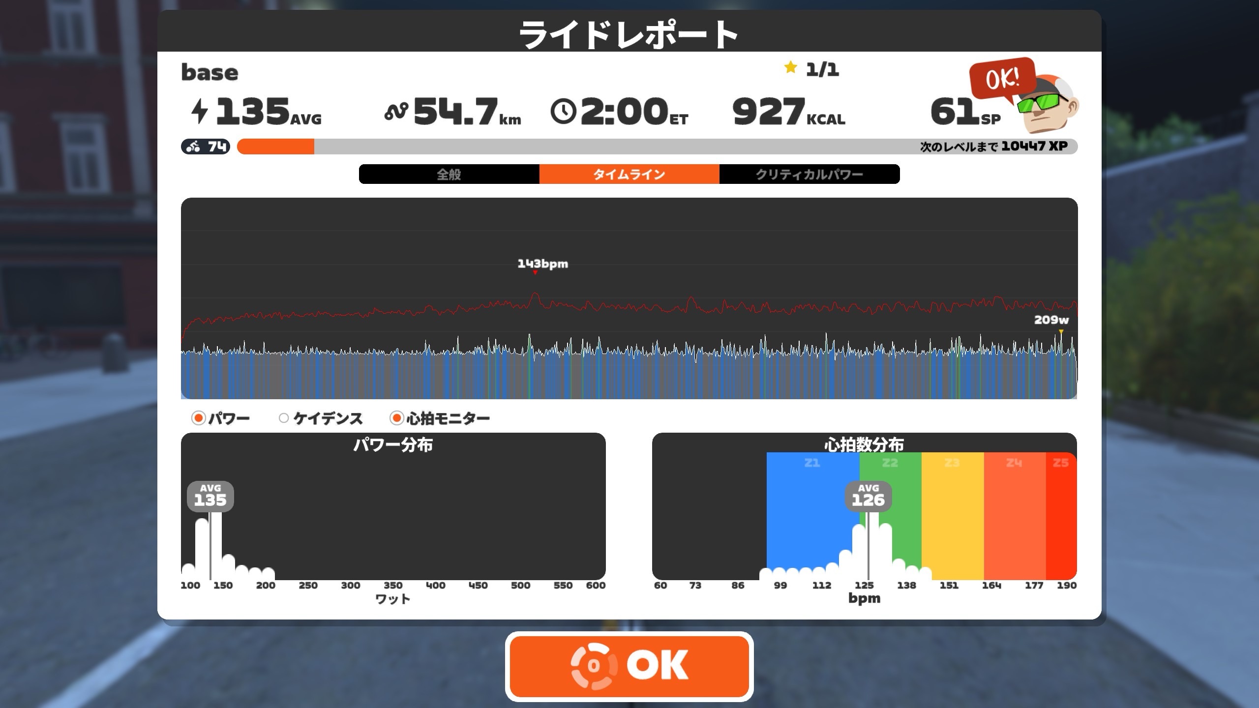 火曜 ZRL+筋トレ→ZRLのみ(Vo2Max)