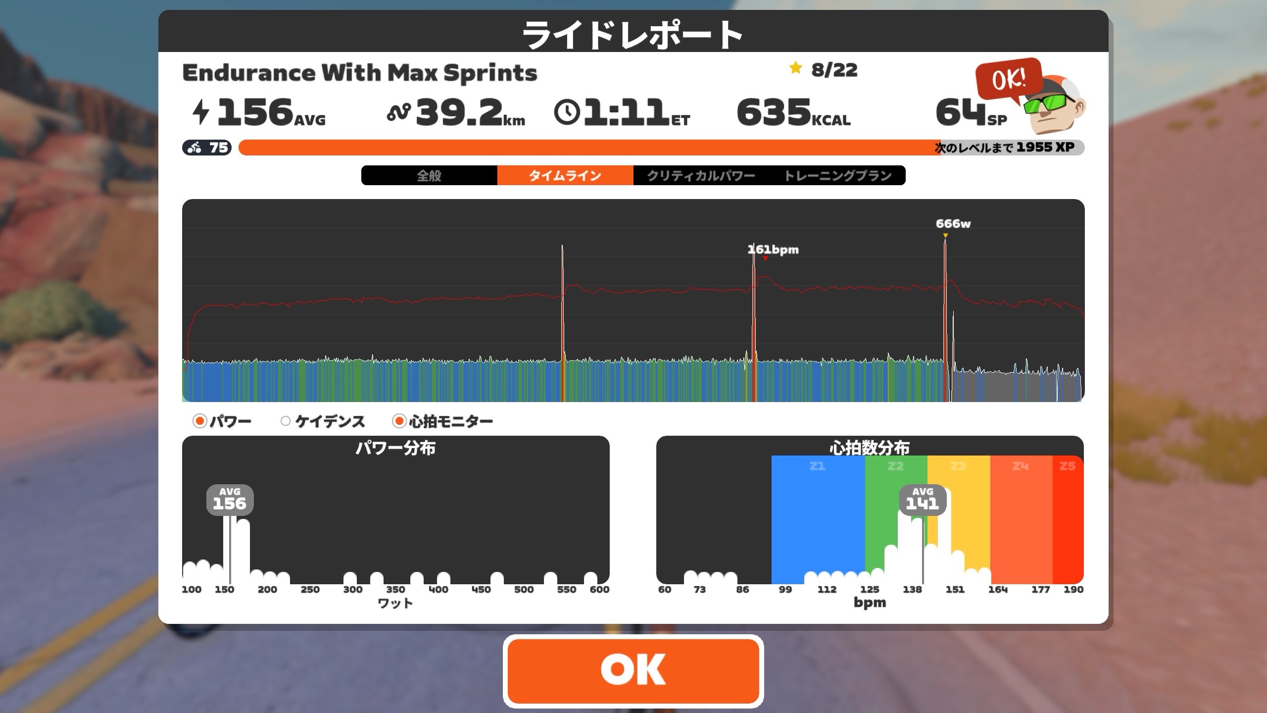 ギアだな。重いギアで低ケイデンス。そこからの39:15で高ケイデンス。