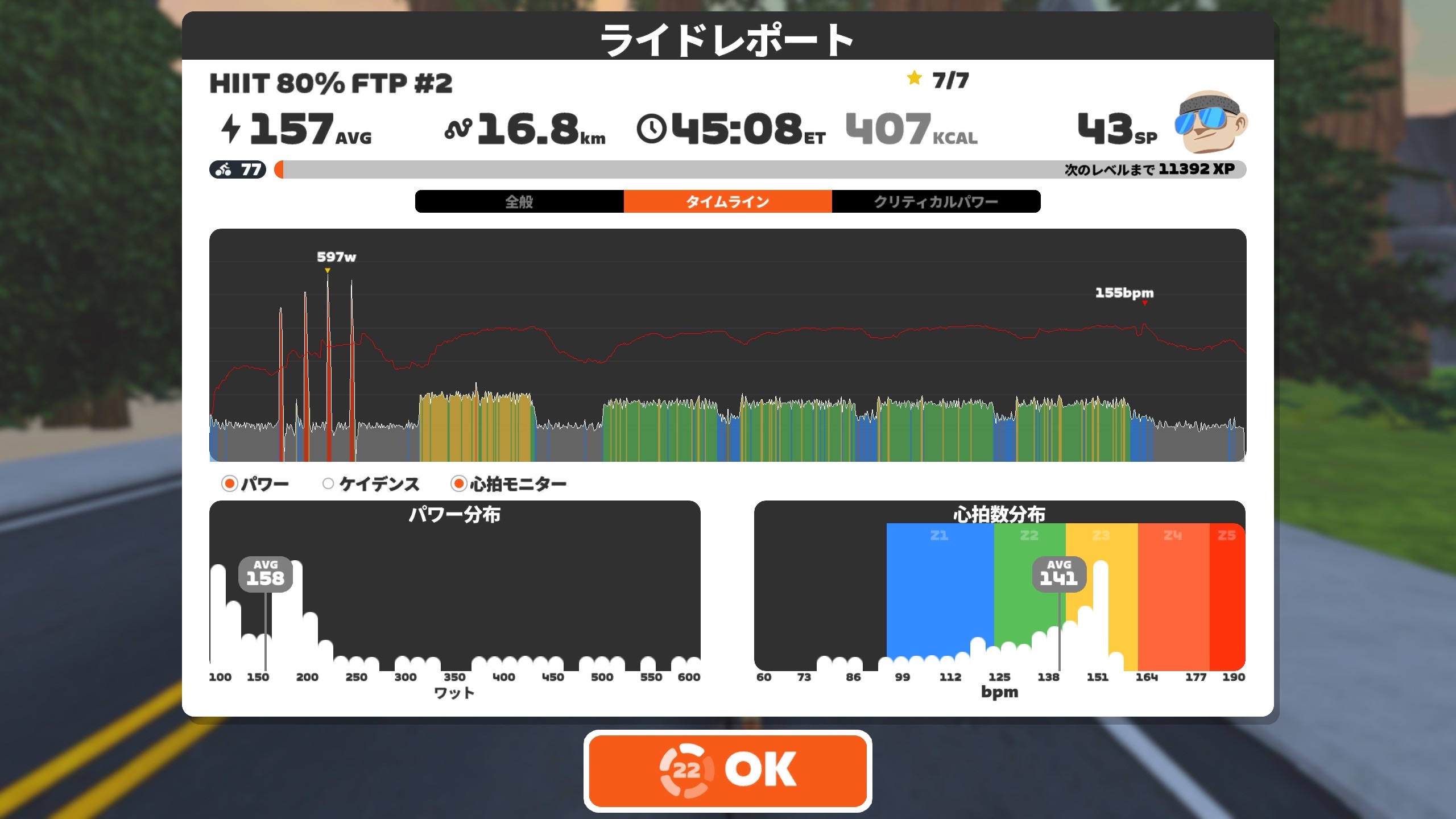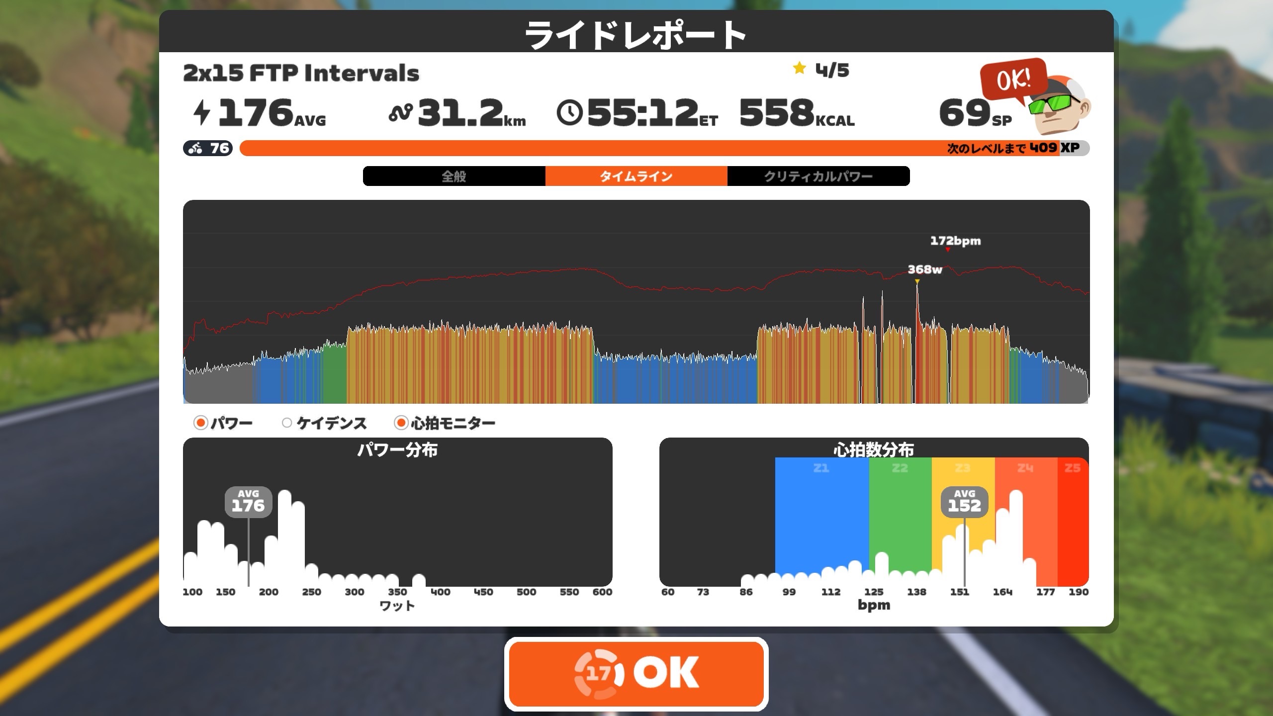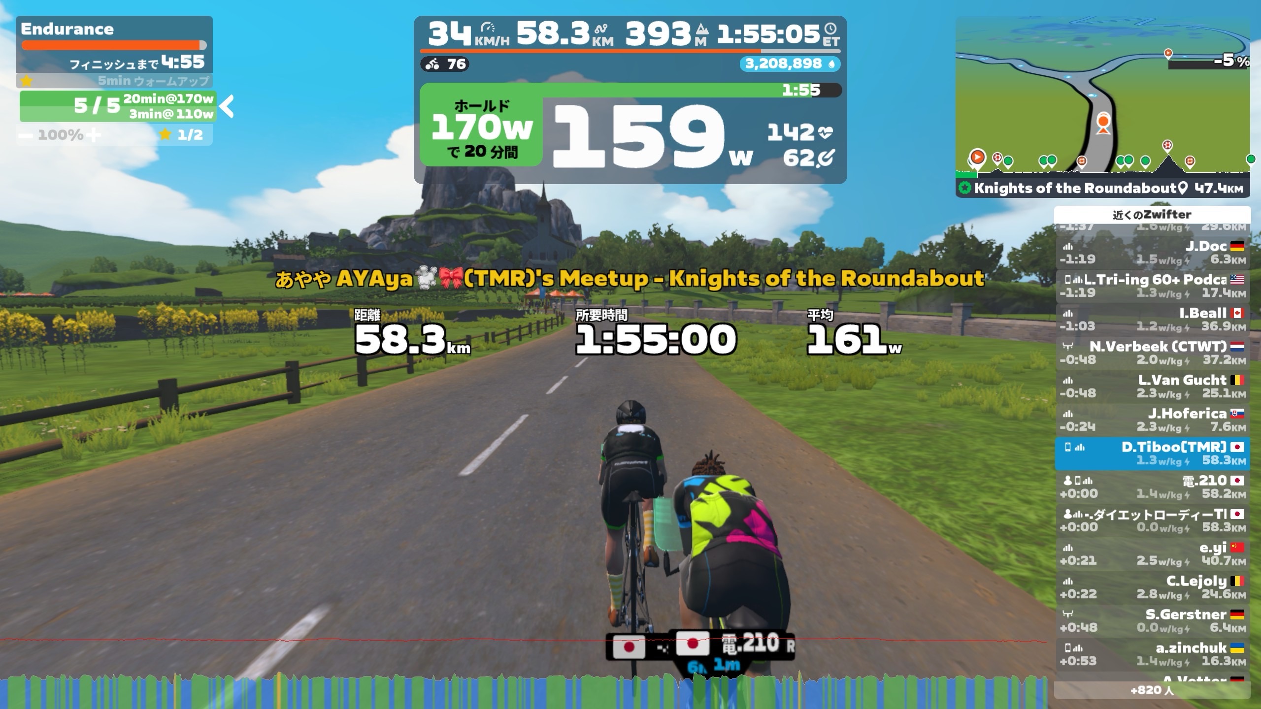 ということで、20分170wを5セット目標。チャンプメニューである。