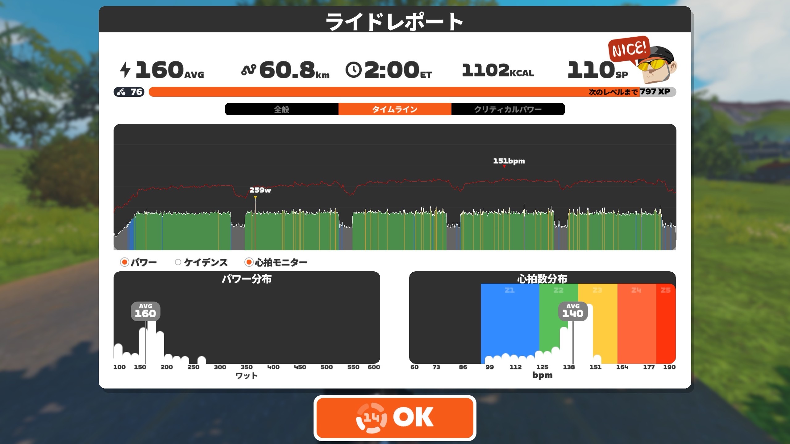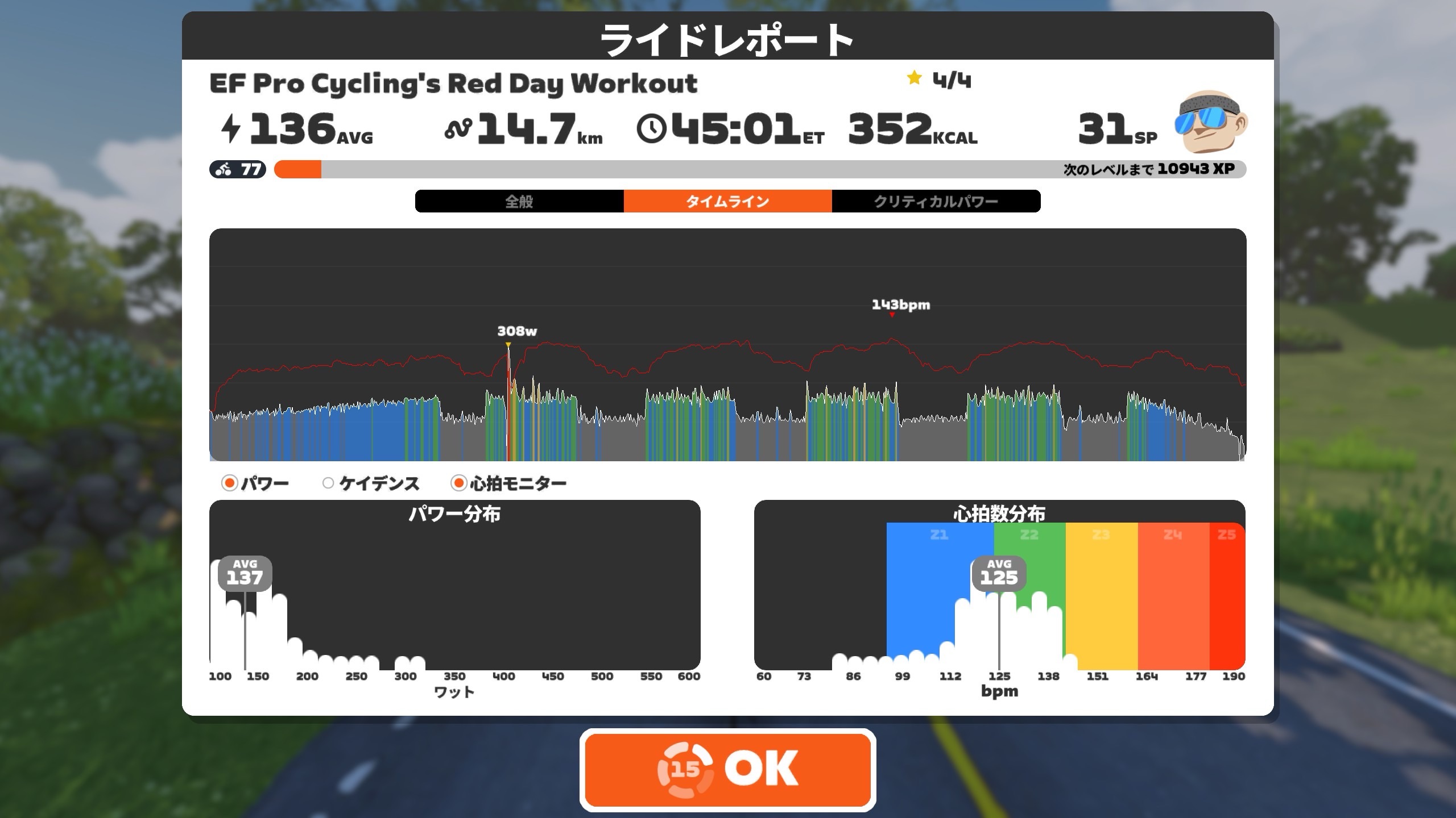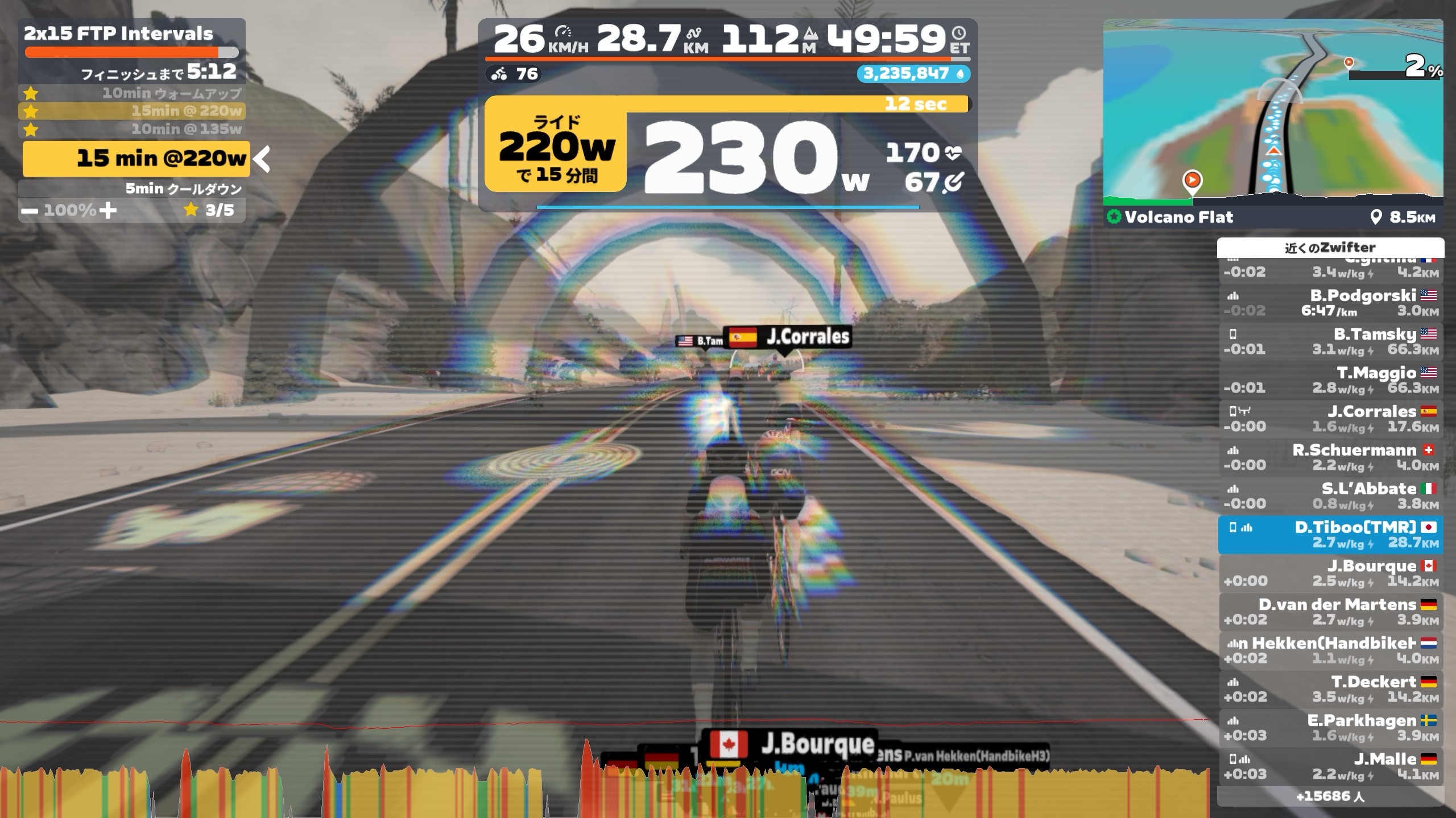 ということで、20分170wを5セット目標。チャンプメニューである。