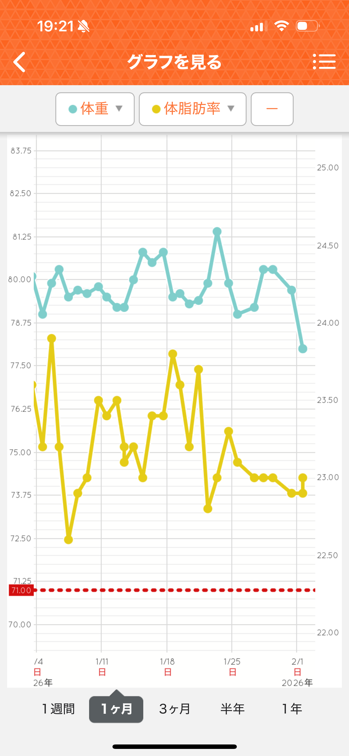 ついに78に!!!!最近するする落ち始めたぞ!
