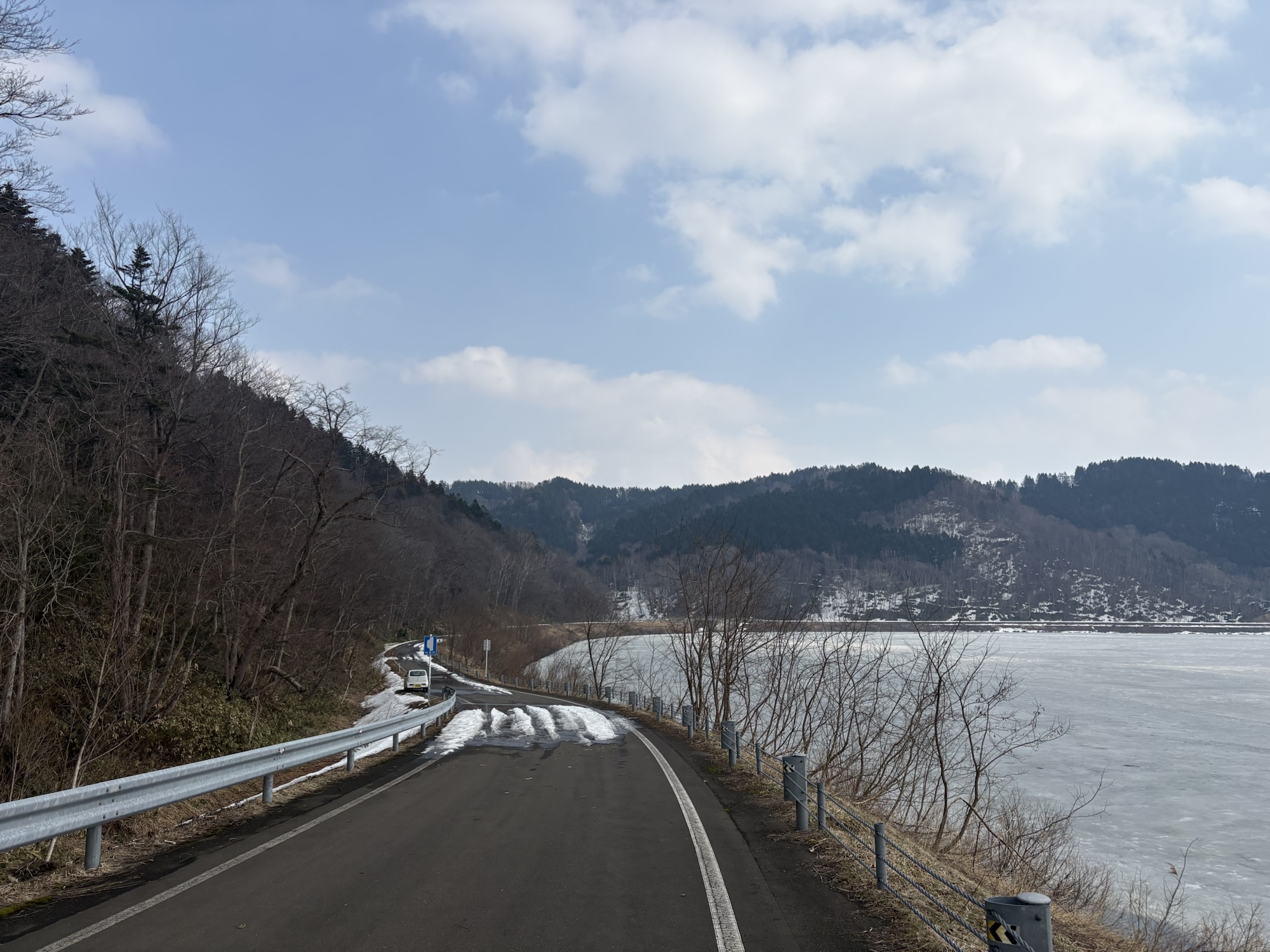 まだ氷も張ってるし、路肩には雪も結構あって寒いね。