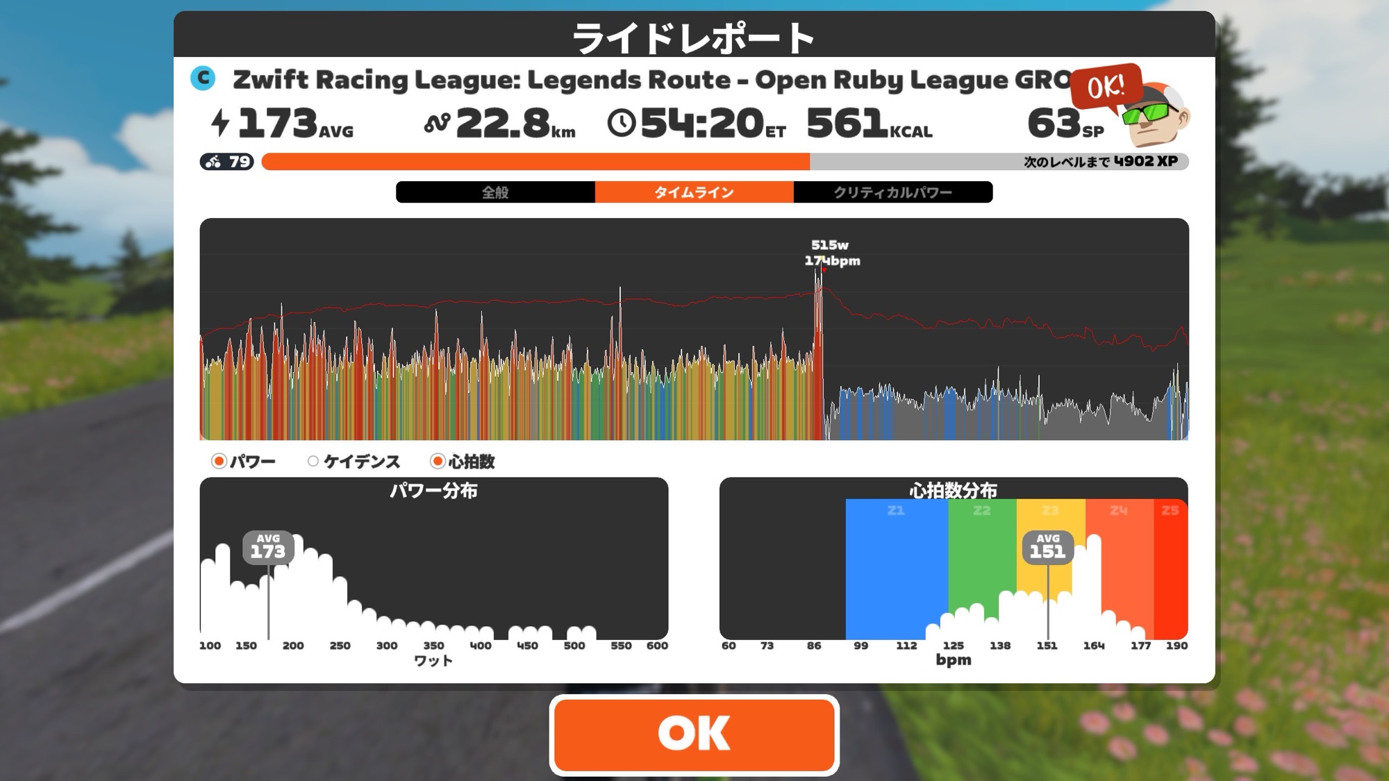 ただしケイデンス100、これが結構しんどい。