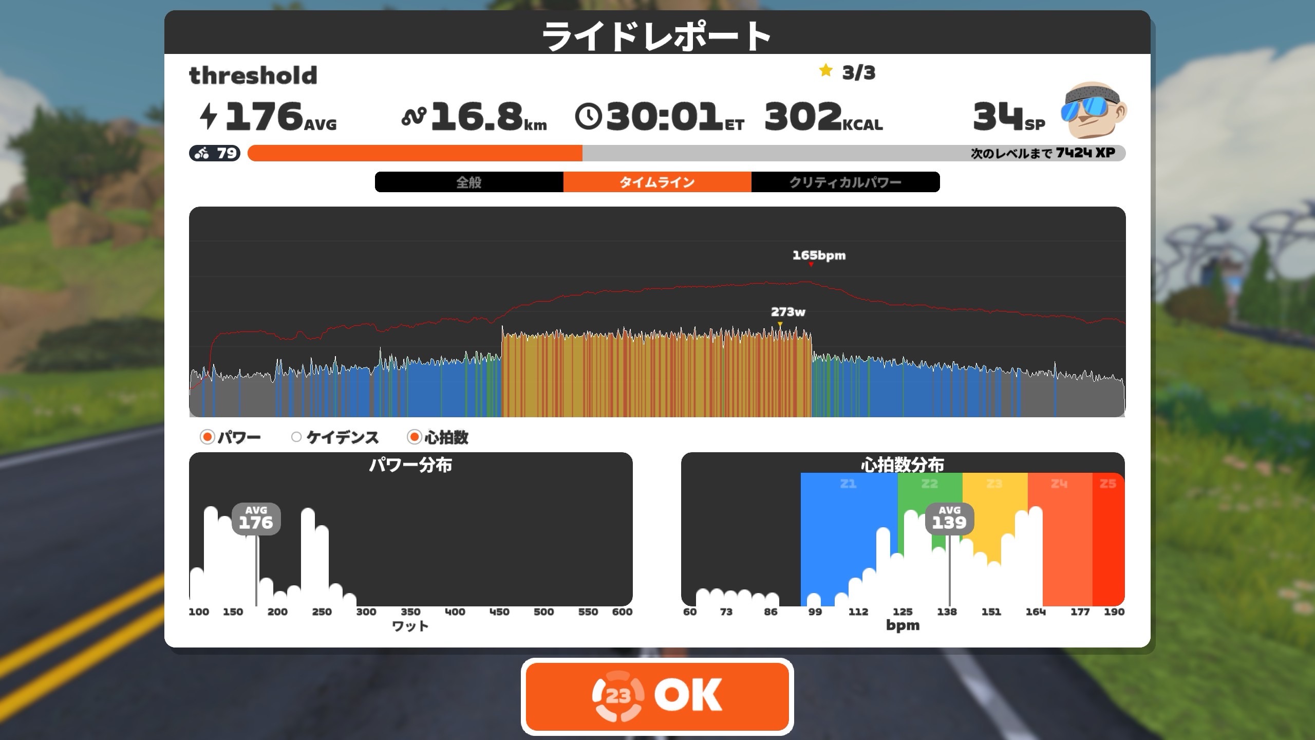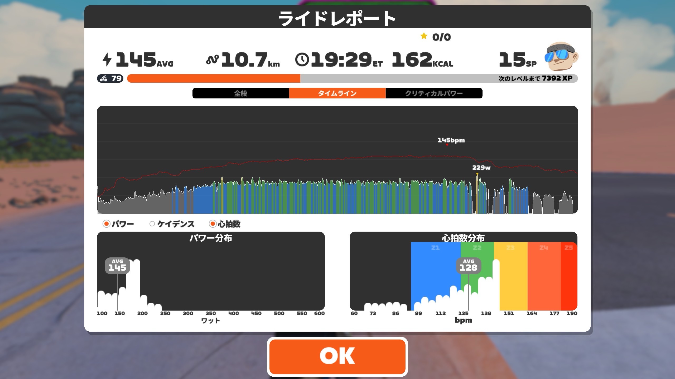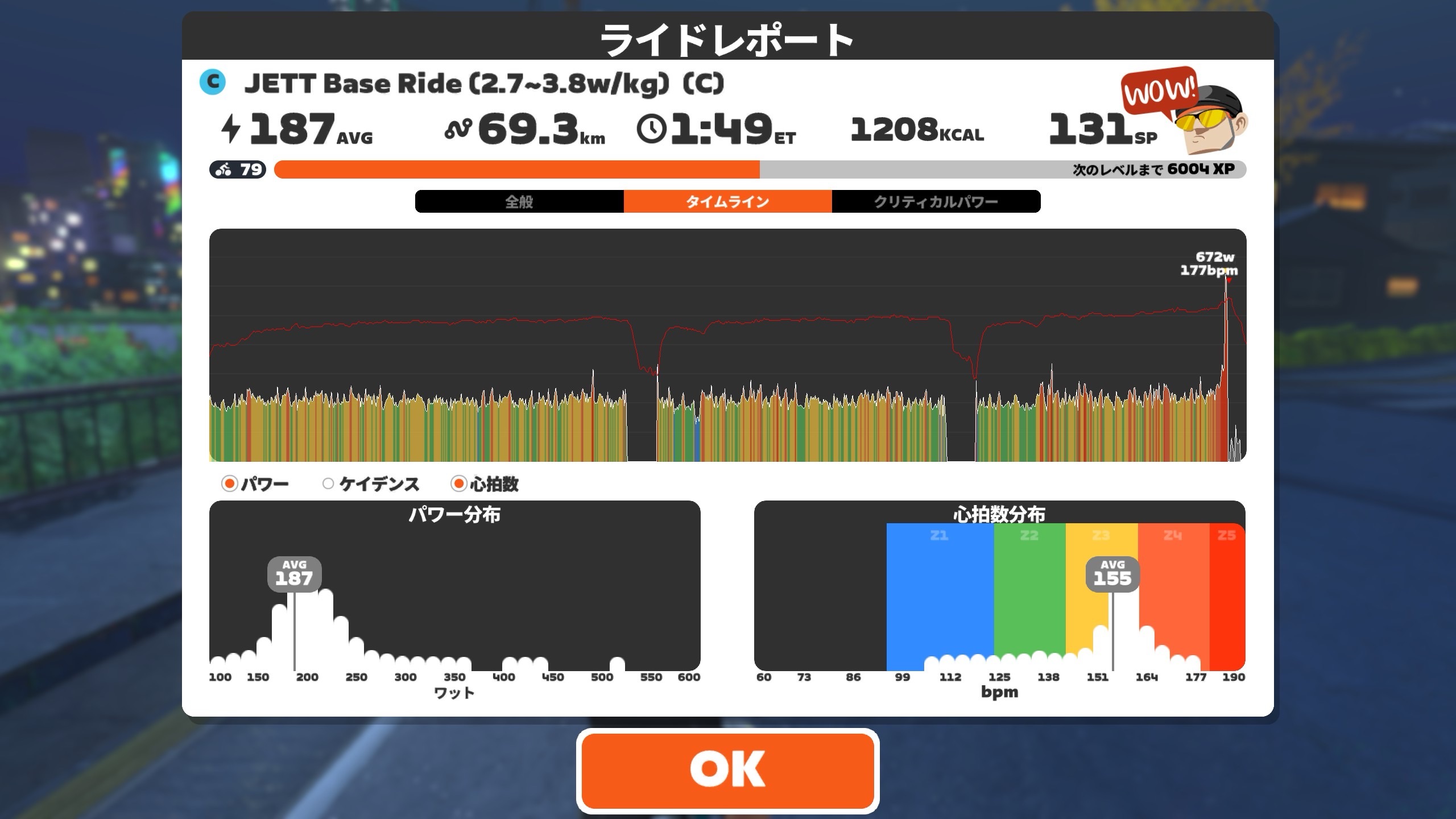 ZWIFTで過去一出せた気がする。3倍で踏み切れた。