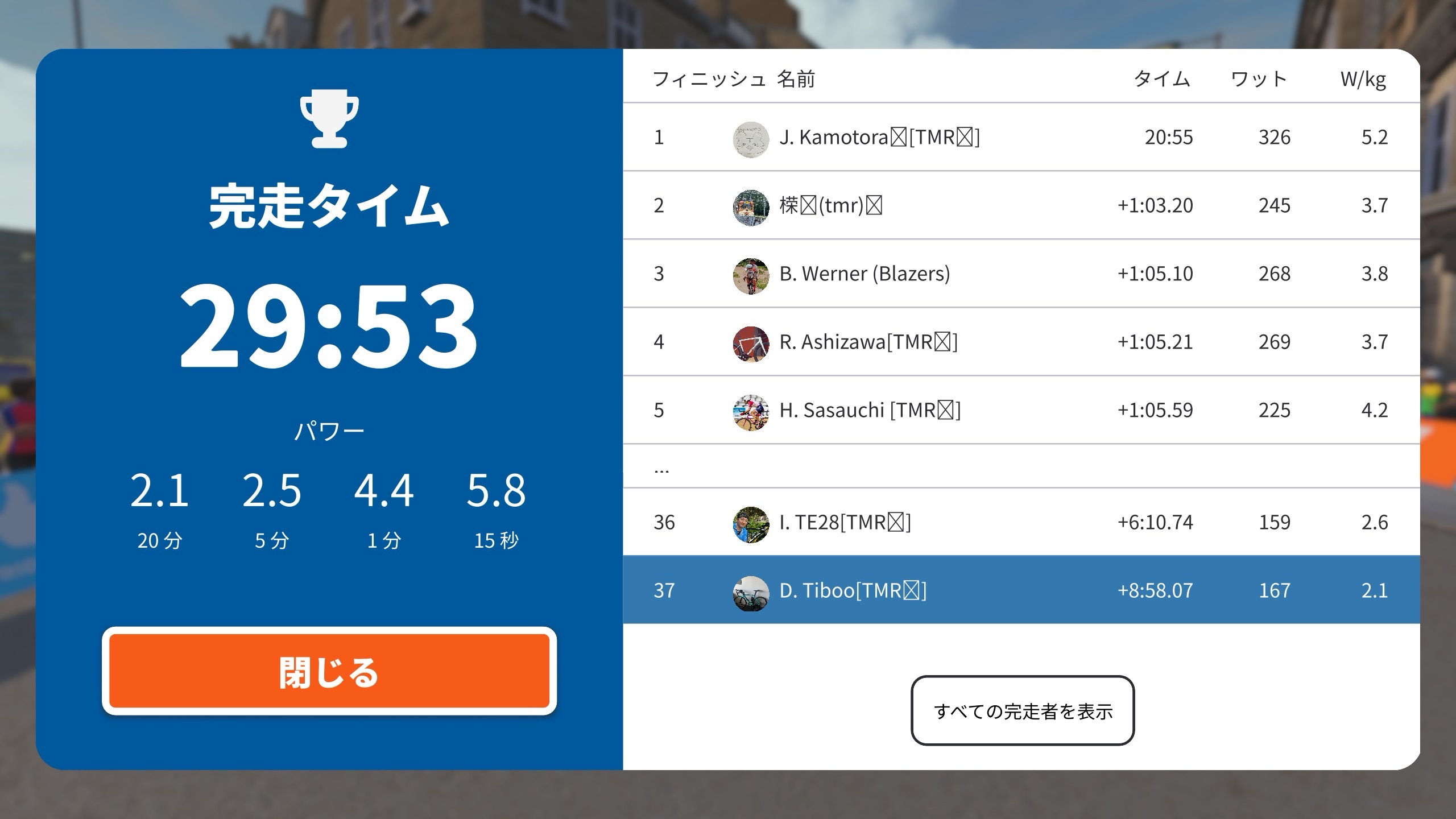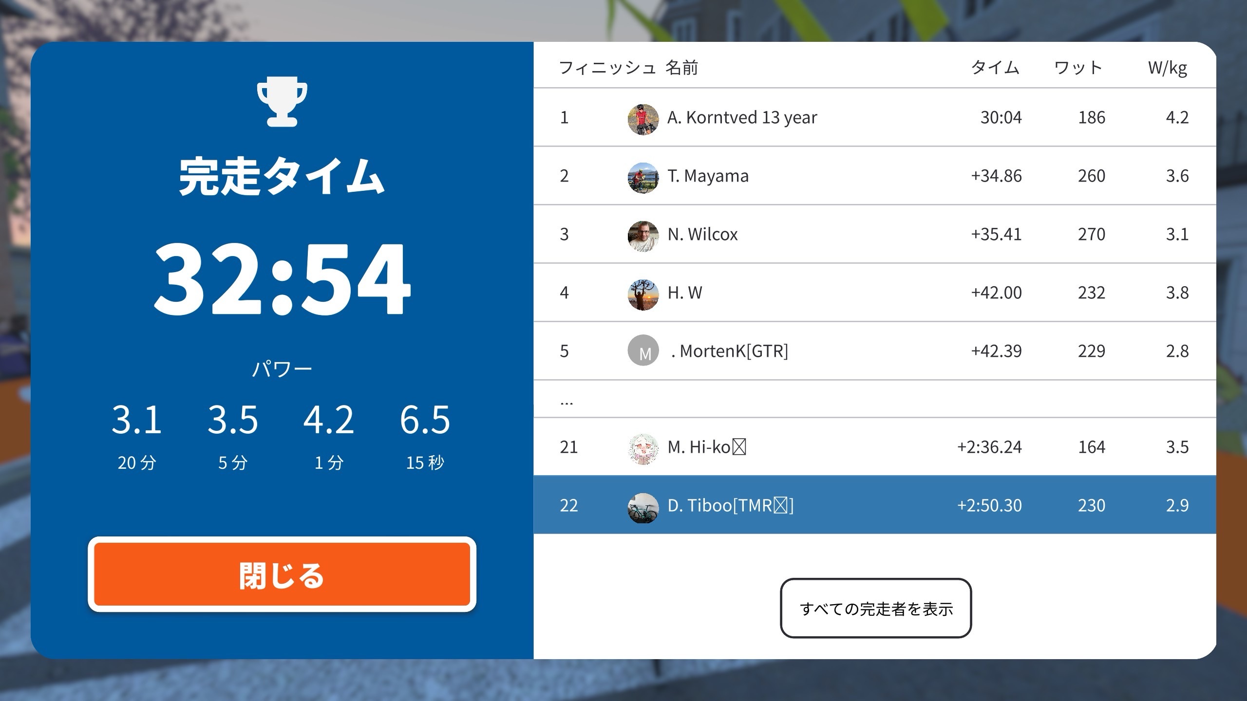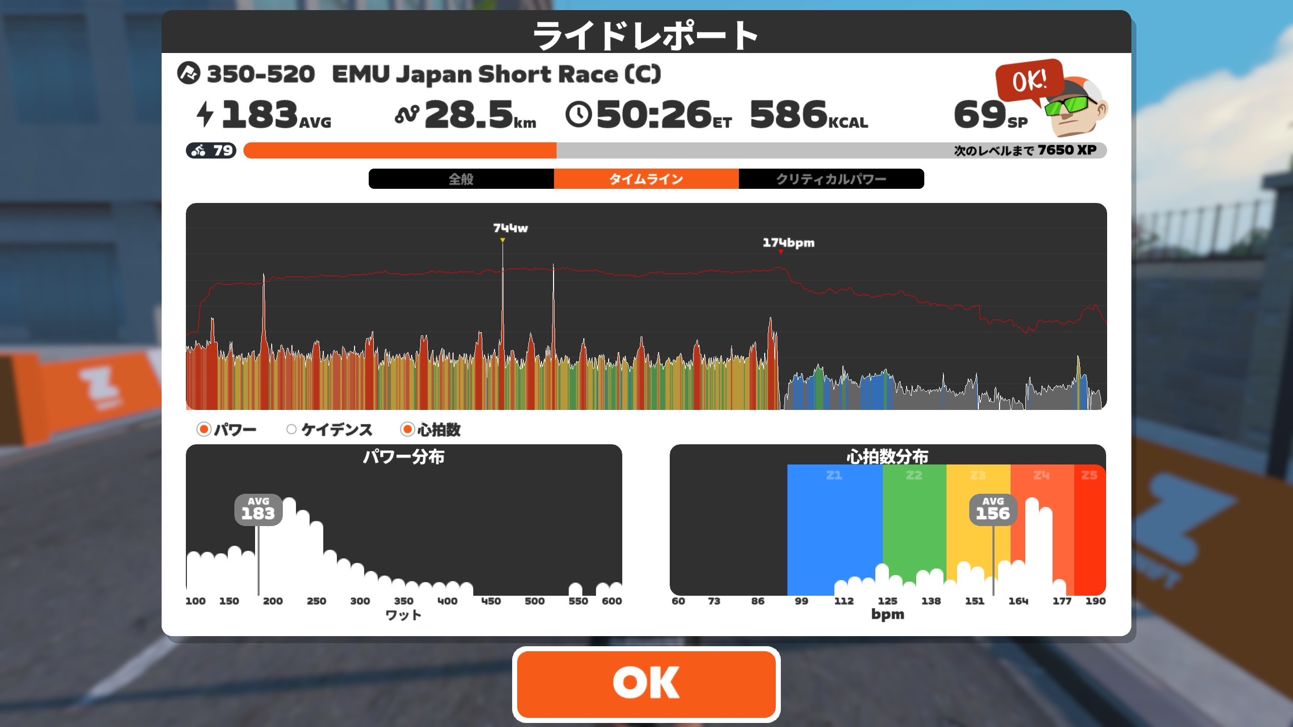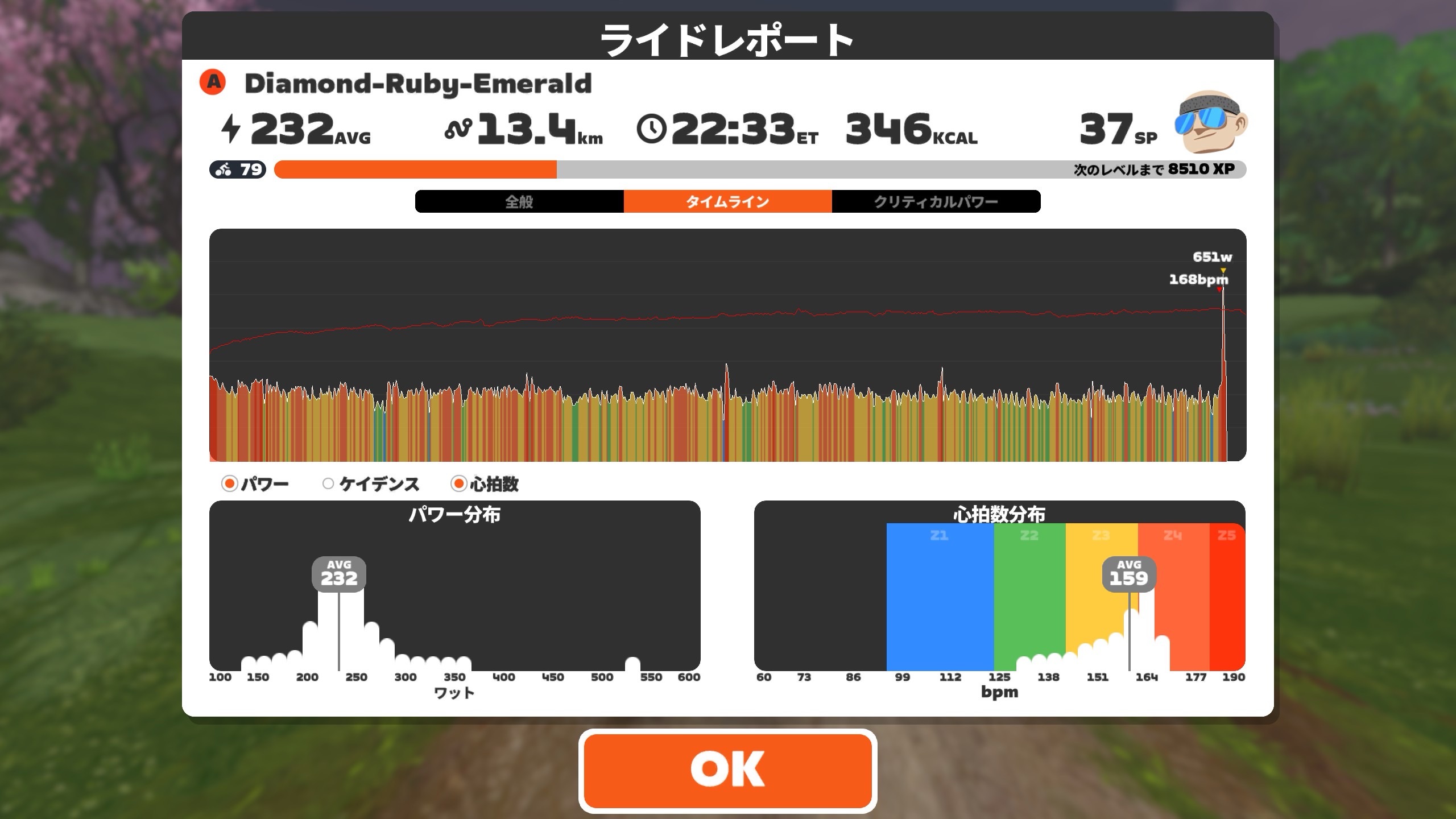 ZWIFTで過去一出せた気がする。3倍で踏み切れた。